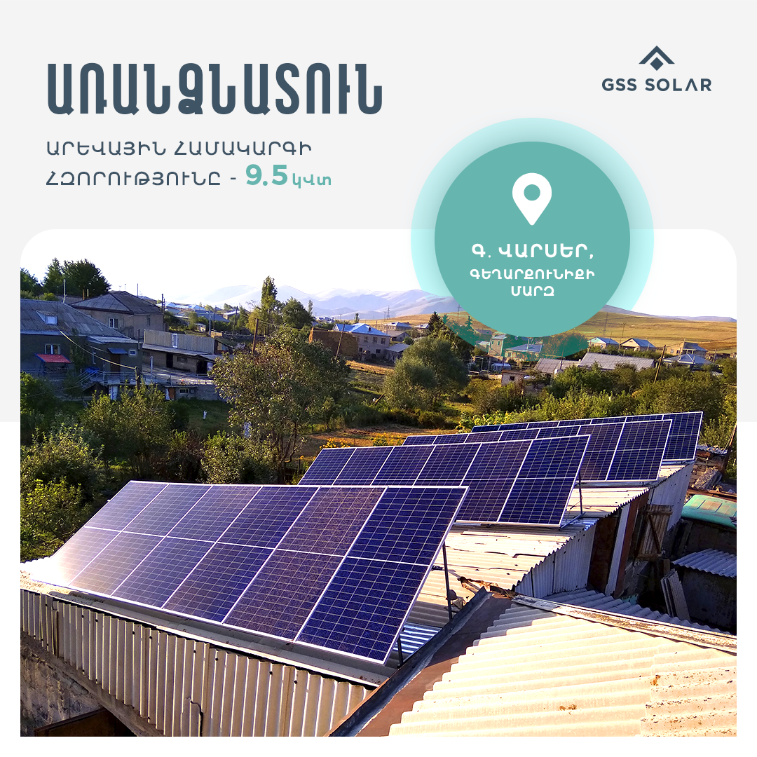 2010թ․-ից ի վեր խնայողության տարատեսակ համակարգերի մշակման և տարածման գործում մեր մասնագետների ներգրավվածությունը 2016թ․-ին հանգեցրեց ՋիԷսԷս (GSS: Global Saving Systems, թարգմանաբար՝ ԸՆԴՀԱՆՈՒՐ ԽՆԱՅՈՂՈՒԹՅՈՒՆՆԵՐԻ ՀԱՄԱԿԱՐԳԵՐ) ընկերության ձևավորմանը, որի հիմնական նպատակն է Հայաստանում զարգացնել վերականգնվող էներգիայի ոլորտը: Իսկ երբ նույն թվականի վերջին կատարվեցին օրենսդրական բարեփոխումներ, ստեղծվեցին նպաստավոր պայմաններ մեր գաղափարներն ավելի արագ կյանքի կոչելու համար: Եվ արդեն շուրջ 9 տարի է մեր ընկերությունը հաստատուն քայլերով շարժվում է առաջ ...